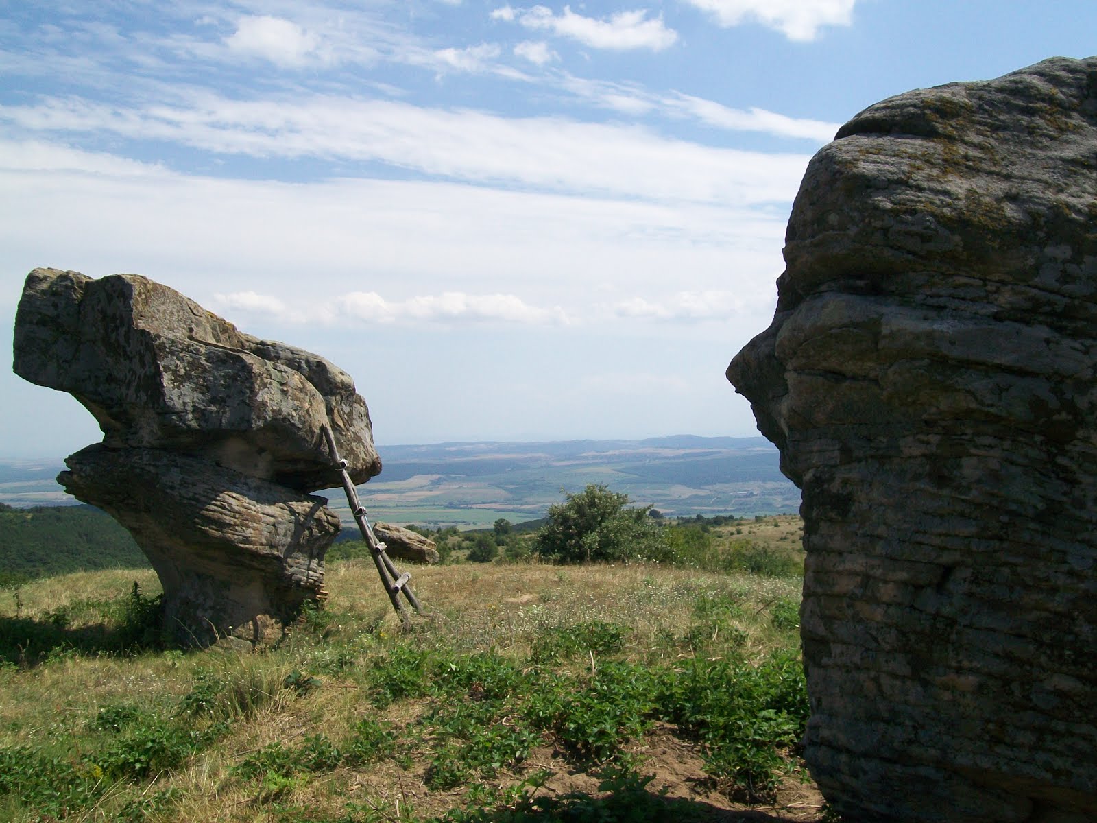 След Сини рид на около 500м хващаме маркировката и излизаме от асфалта.Сечем този големия асфалтов завой по който обикновено се минава заради грешка в планинарската карта. Някъде на километър и нещо от Доброванските гъби(скален феномен) марките свършват. Последно е основата на бивш маркировъчен стълб.